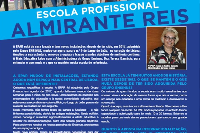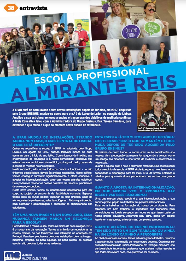Partilho a minha entrevista à revista Mais Educativa de Abril, acerca da EPAR - Escola Profissional Almirante Reis, do Grupo Ensinus, enquanto sua Administradora.