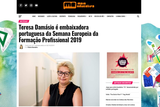 Partilho a notícia que a Mais Educativa publicou acerca da minha nomeação enquanto Embaixadora Portuguesa da Semana Europeia da Formação Profissional, que se assinala de 14 a 18 de outubro, em Helsínquia.
